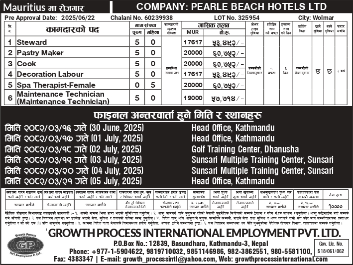 Interview Location: HEAD OFFICE KATHMANDU , GOLF TRAINING CENTER DHANUSHA , SUNSARI MULTIPLE TRAINING SUNSARI ,